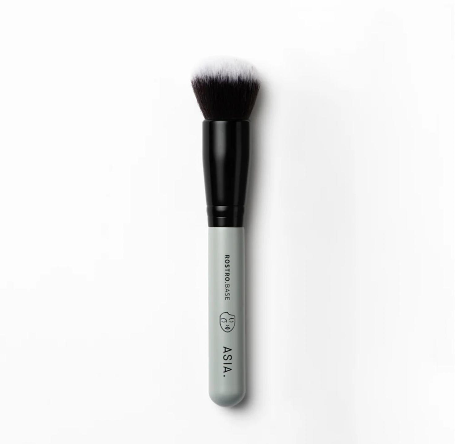 - Aplicar base en el rostro y distribuir con la brocha mediante toques o movimientos circulares