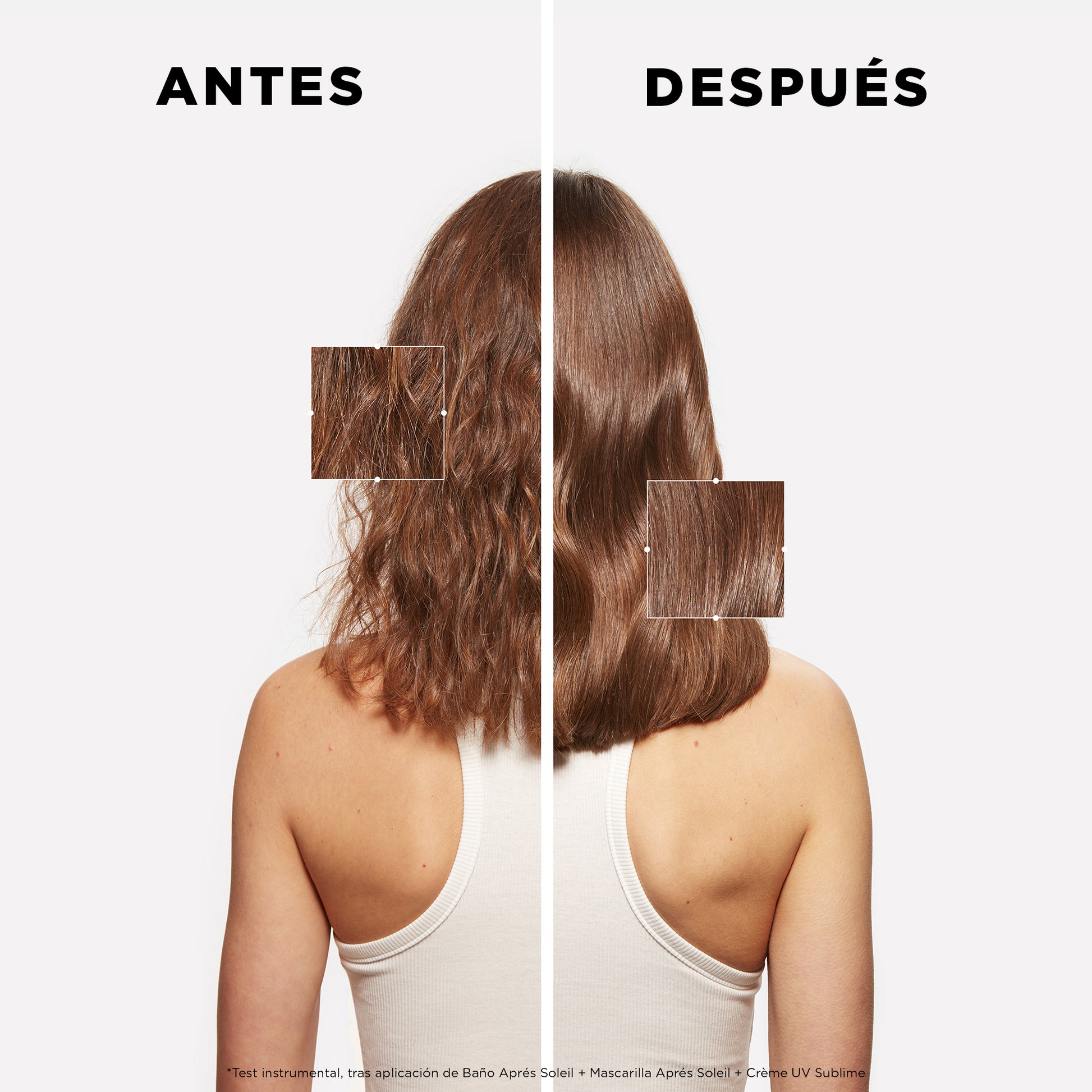 Mascarilla nutritiva diseñada para cabello expuesto al sol. Suaviza la fibra, fortalece desde la raíz hasta las puntas y protege contra el frizz y daños causados por la radiación solar.